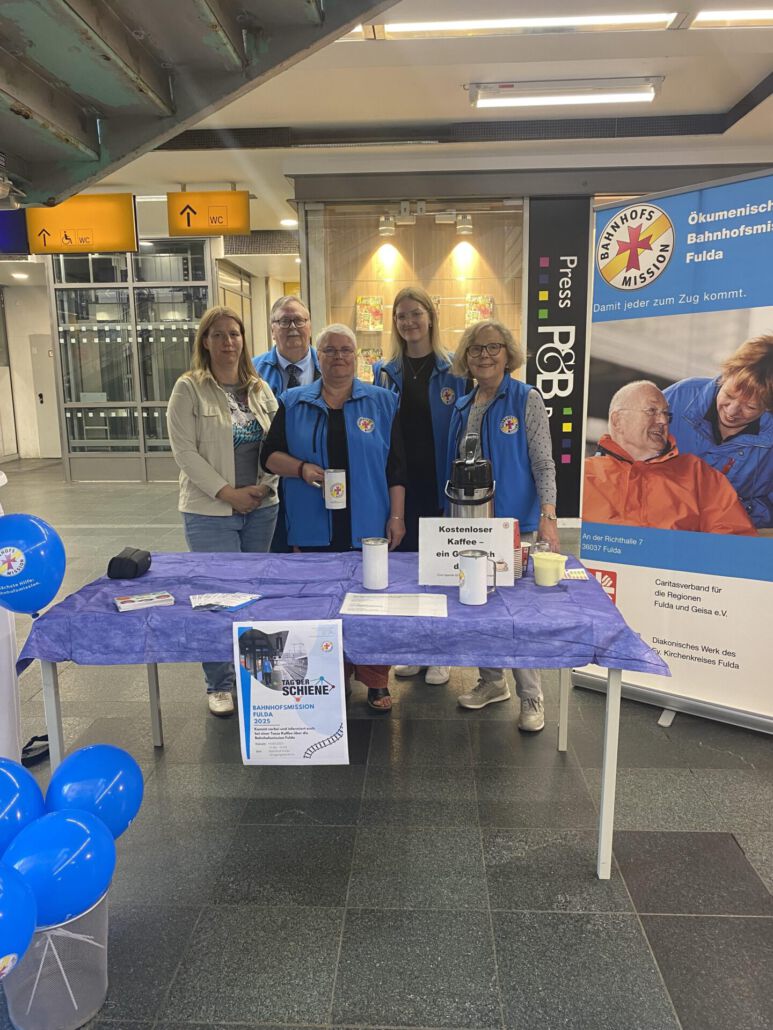 Am Tag der Schiene 2025 war die Bahnhofsmission Fulda mit einem Infostand im Bahnhof präsent und nutzte die Gelegenheit, um auf ihre vielfältigen Aufgaben aufmerksam zu machen. Unter dem Motto „Wofür nutzen Sie den Bahnhof?“ führten wir eine kleine Umfrage durch, die zeigte, wie unterschiedlich die Menschen den Bahnhof nutzen – sei es als Treffpunkt, Reisestation oder einfach als Ort der Begegnung.
